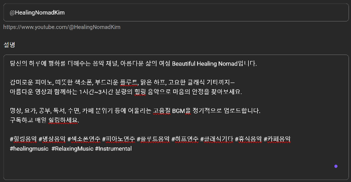 채널 소개란은 단순한 자기소개가 아니라, 콘텐츠의 안내문이자 신뢰의 첫걸음이다. 글의 성의와 디테일은 구독자에게 채널에 대한 인상을 좌우한다. 나만의 목소리와 이야기로 채워 넣는 것이 핵심이다.
